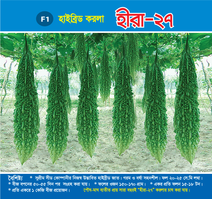 চাষের সময়: পৌষ-মাঘ ব্যতীত প্রায় সারা বছরই “হীরা-২৭” করলা চাষ করা যায়